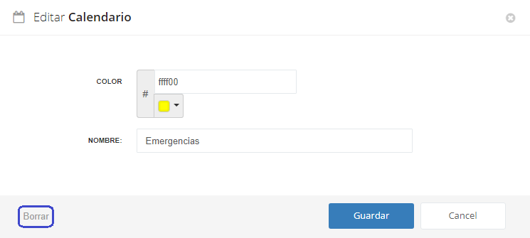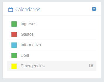 En el módulo de calendario, ubique la ventanilla con la lista de las categorías de los eventos.